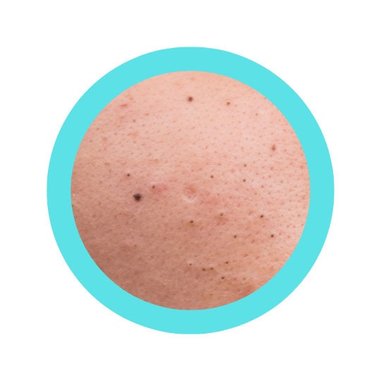 The most common type of acne is blackheads. As implied by the name, blackheads look like small black dots. Blackheads are a mild, non-inflammatory form of acne that is common in teenagers. Blackheads are also called open comedones because the pores are open to air. Exposure to air creates a chemical reaction with oxygen, causing the contents in the pore to turn black.