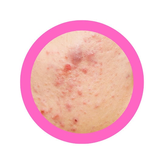 Last but not least is cystic acne. Cysts are large, painful, pus-filled lesions deep under the skin. In very severe cases, acne cysts can appear dark red or purple in color. Cystic acne is the most severe form of acne. Hormonal imbalances play a significant role so it’s most commonly seen in teens, young adults, and women. (I started getting cystic acne when I turned 19, and it was the worst acne I ever had. đ )