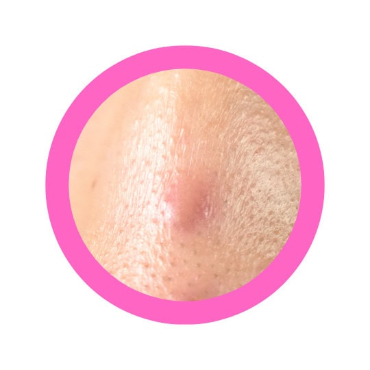 Closely related to pustules are papules. Simply put, papules are pustules in their early form. Acne papules are small, solid-feeling bumps with no visible pus or poppable “head.” They may appear skin-colored, pink, red, brown, or purple.