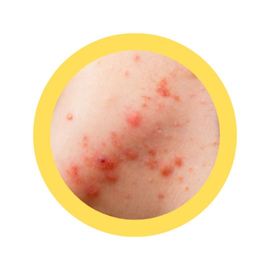 Pustules are pus-filled acne (hence the name). This type of acne is probably what comes to mind when you think of a big, poppable pimple. Acne pustules consist of larger white or yellowish bumps surrounded by red inflammation. If you have pustules, then you’re dealing with moderate, inflammatory acne.